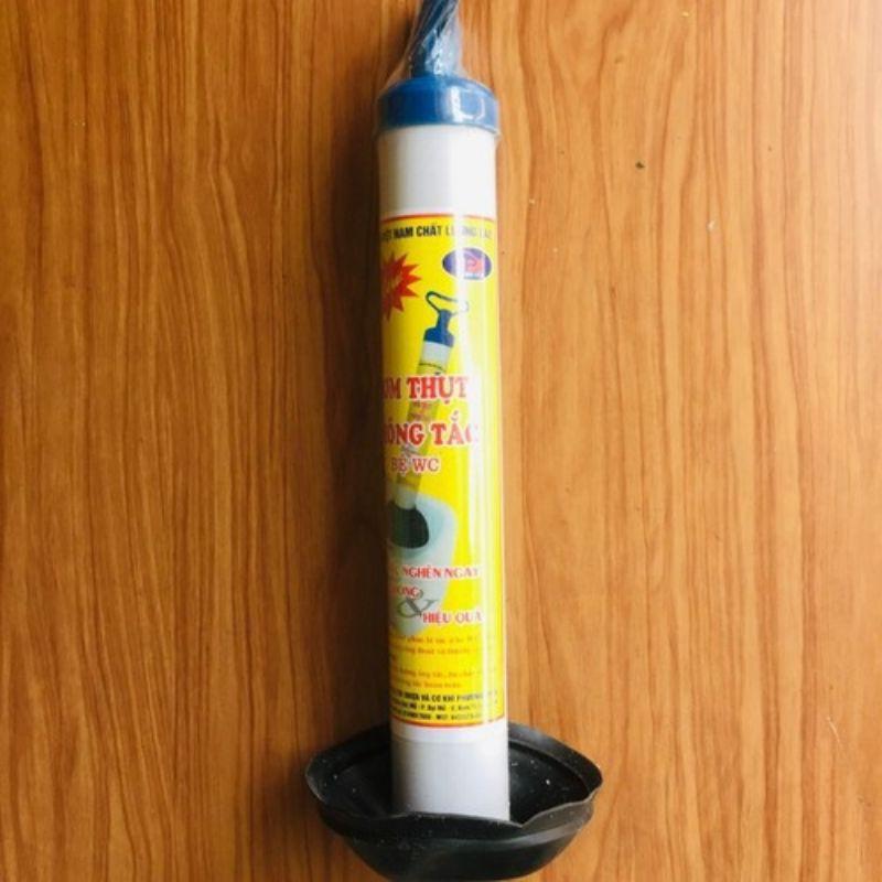 Công dụng: Làm thông thoát phân bị tắc ở bệ WC,chậu rửa,đường ống cống thoát và thiết bị vệ sinh... +, Cách thông tắc bệ xí bằng Bơm thụt cao su đơn giản nhất – Theo kinh nghiệm của chúng tôi thì bạn nên sử dụng bơm thụt cao su loại lớn, có miệng vừa với bệ xí nhà mình để ép các chất thải bị tắc nghẽn để tạo sức đẩy được tốt nhất. – Trước khi bạn sử dụng bơm thụt cao su thì bạn nên nhúng bơm thụt cao su vào nước ấm để cao su mềm ra khiến cho cách thông tắc bệ xí, bồn cầu được tốt nhất. Cách dùng:Đặt bơm vào đường ống tắc ấn chặt và bơm cho đến khi thông tắc hoàn toàn