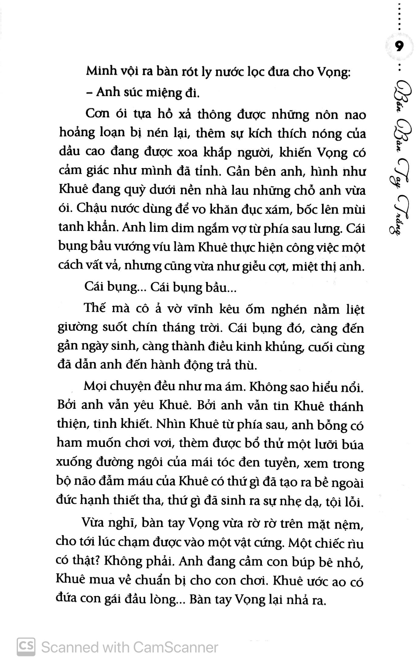 'Mọi chuyện đều như ma ám. Không sao hiểu nổi. Bởi anh vẫn yêu Khuê. Bởi anh vẫn tin Khuê thánh thiện, tinh khiết. Nhìn Khuê từ phía sau, anh bỗng có ham muốn chơi