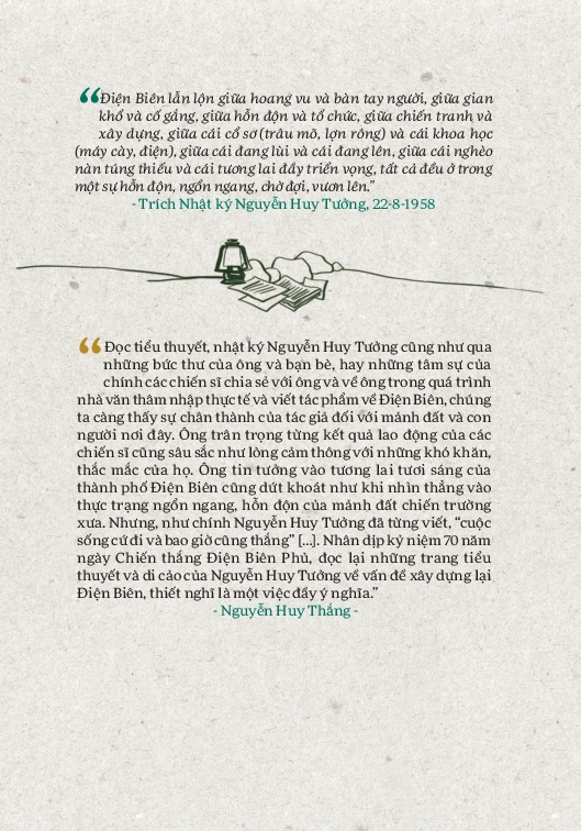 Cần biết thêm rằng, Nguyễn Huy Tưởng là người dẫn đoàn nhà văn đầu tiên lên Điện Biên Phủ (“Tổ Điện Biên”) kể từ sau ngày chiến sự; tham gia vào mọi công việc lao động thường nhật của các chiến sĩ xây dựng mảnh đất Tây Bắc lịch sử này. Tác phẩm được thai nghén chính trong cái khó khăn, vất vả của một đời sống xây dựng chuyên cần, vị lai, không ngưng nghỉ một phút giây nào ấy. Một ấn bản được biên soạn công phu và giàu tâm huyết, như một việc làm ý nghĩa và thiết thân để kỷ niệm sự kiện 70 năm Chiến thắng Điện Biên Phủ.