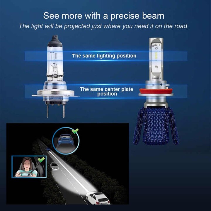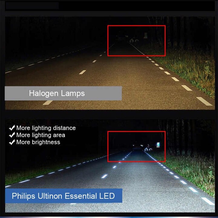 - Nhờ có thiết kế quang học chính xác, Philips Ultinon Essential LED chiếu sáng trên những đoạn đường mà bạn cần nhất. Bạn sẽ có thể phát hiện chướng ngại vật nhanh hơn và lái xe tự tin hơn mà không làm chói mắt những người lái xe khác, đảm bảo an toàn cho tất cả mọi người lưu thông trên đường. Để có chùm sáng rõ ràng, điều quan trọng là bạn phải đặt bóng đèn ở đúng vị trí trong đèn pha. Bằng cách sử dụng và điều chỉnh vòng nối, bạn có thể đảm bảo hiệu suất ánh sáng tối ưu và tăng cường an toàn đường bộ.
