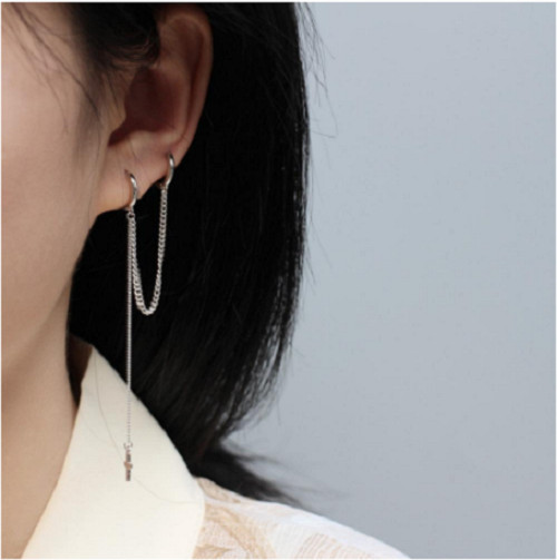 Khuyên tai nam dây xích dài dáng 2 chữ thập #khuyentainam #phukienthanthien #binhouseofficial #bo
