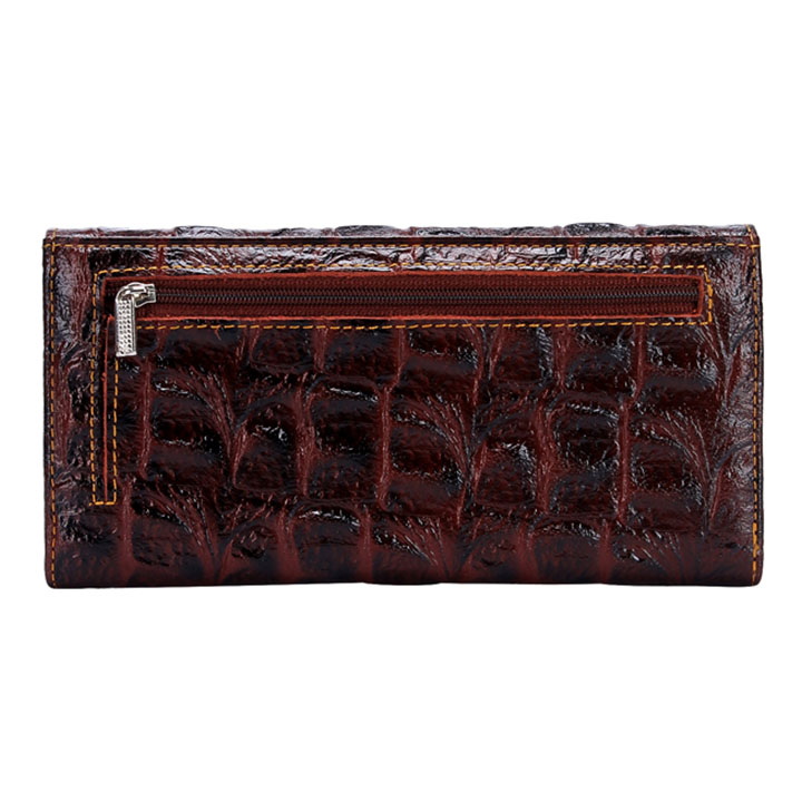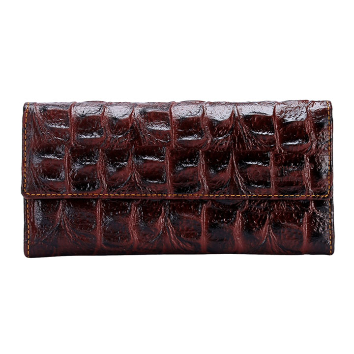 Ví/Bóp nữ Huy Hoàng da bò vân cá sấu 3 gấp màu nâu 3107