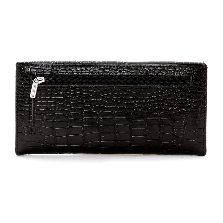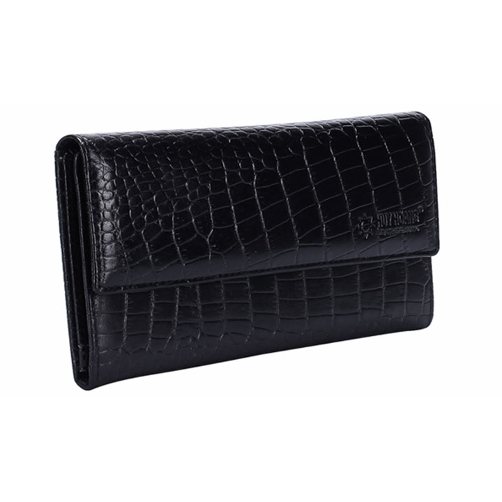 Ví/Bóp nữ da bò Huy Hoàng vân cá sấu nhỏ 3 gấp màu đen 3149