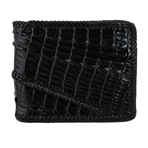 ✨Bóp nam Huy Hoàng da cá sấu đan viền 2 gai màu đen HP2771