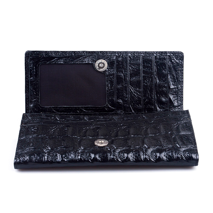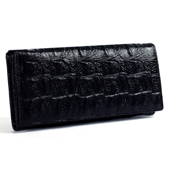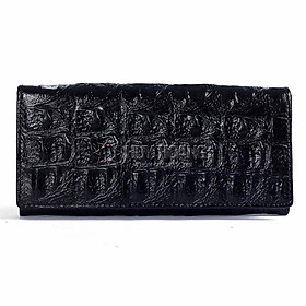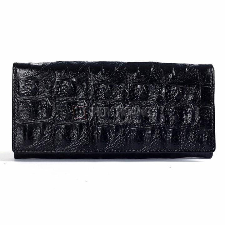 Ví/Bóp nữ da bò vân cá sấu Huy Hoàng 2 gấp màu đen 3116