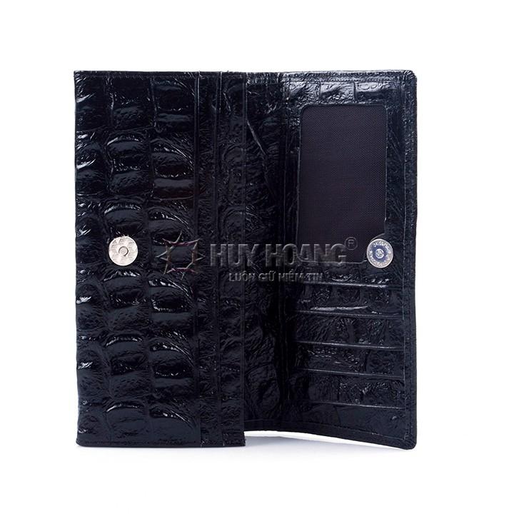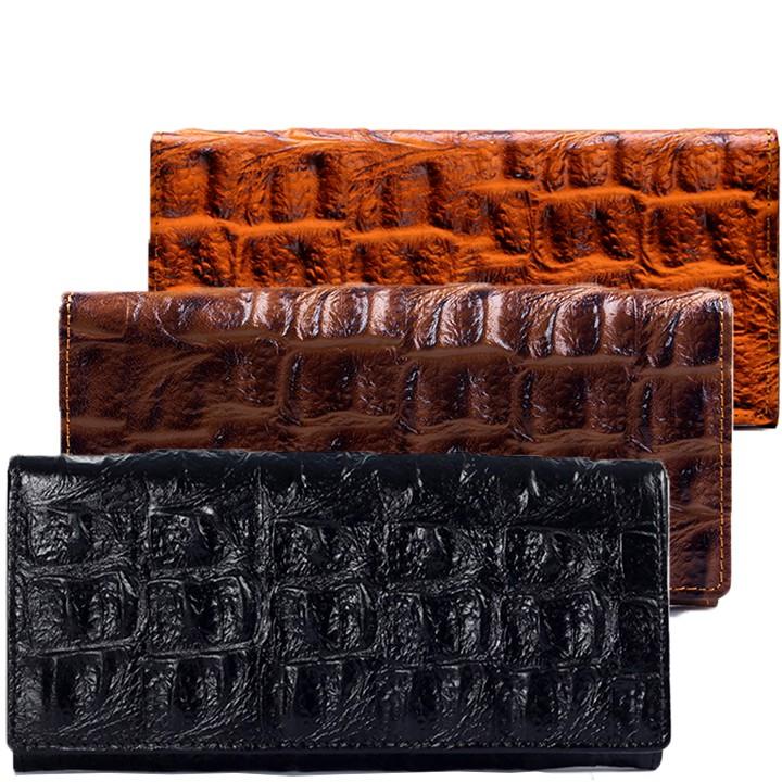 ✨Bóp nữ da thật vân cá sấu Huy Hoàng 2 gấp vân lớn màu đen, nâu, vàng bò HC3116-17-18