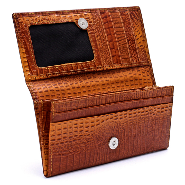 Ví nữ/Bóp nữ da bò vân cá sấu Huy Hoàng 2 gấp vân lớn màu đen, nâu, vàng bò 3116-17-18