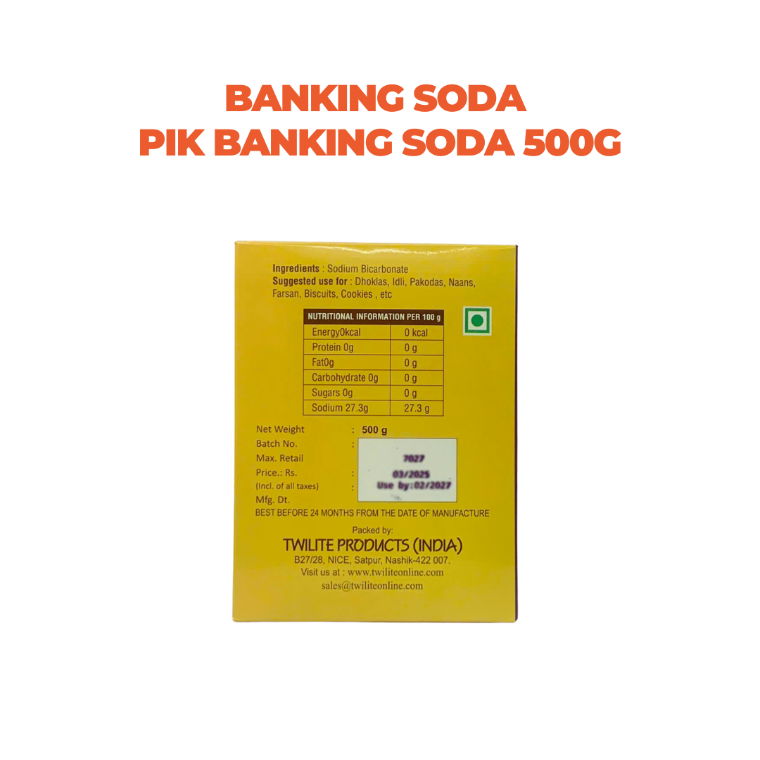Bột BANKING SODA PIK BANKING SODA 500G Dùng trong nấu ăn và làm bánh Đời sống: - Đánh tan mảng bám trên bát đĩa - Bạn hãy trộn 2 thìa đầy muối nở vào
