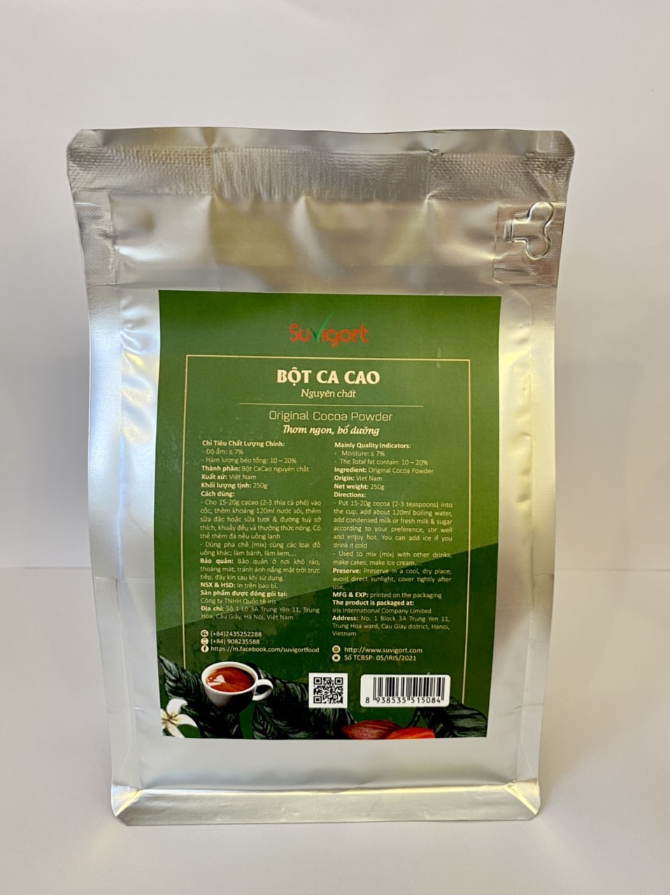 Bột Cacao nguyên chất Suvigort Bột cacao nguyên chất 100% mang đến nguồn năng lượng tuyệt vời và hương vị thơm ngon tự nhiên, hoàn toàn không phụ gia, hoá chất. Cacao được chứng minh là nguồn cung cấp nhiều dưỡng chất và khoáng chất, trong đó có axit oleic vô cùng tốt cho sức khỏe, tim mạch, giúp ổn định huyết áp, giảm nguy cơ tiểu đường, giúp tinh thần minh mẫn, giảm mệt mỏi, giảm stress và giàu chất chống oxy hoá. Sản phẩm phù hợp cho mọi đối tượng sử dụng. Hạn sử dụng: 12 tháng từ ngày sản xuất. ️Liên hệ Suvigort Food để biết thông tin sản phẩm: ️ 0243 5252288 - 0908235588