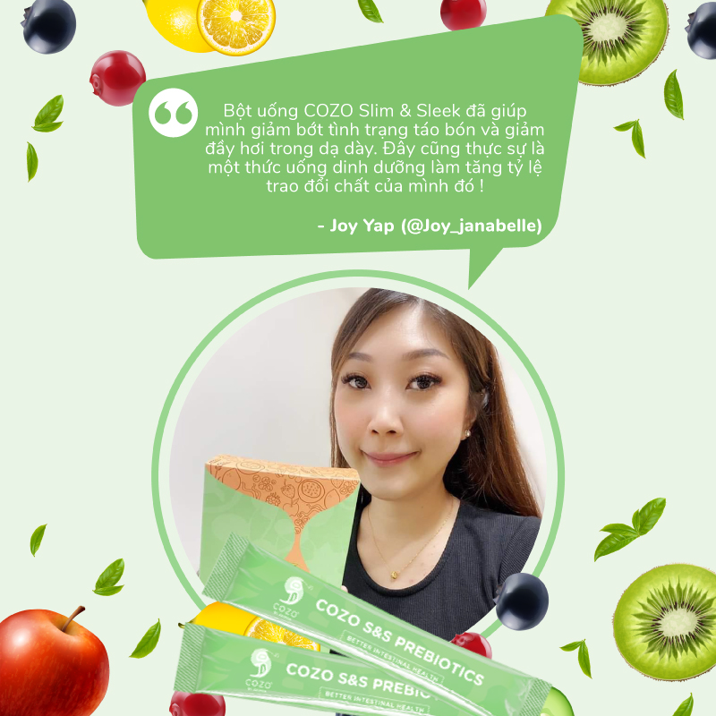 Cozo Slim & Sleek ngăn ngừa độc tố tích tụ trong ruột do táo bón, và xây dựng lại hệ thực vật đường ruột khỏe mạnh để thúc đẩy quá trình tiêu hóa hiệu quả.