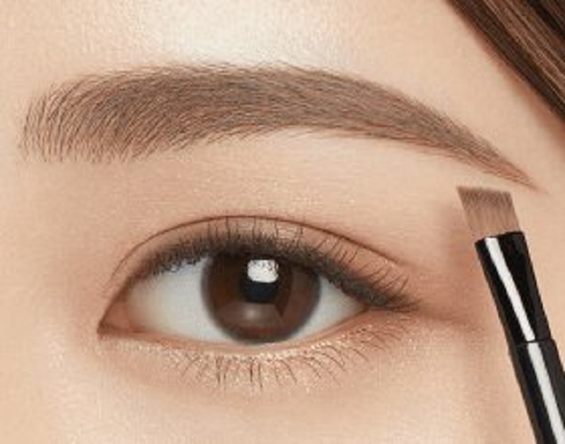 - Dùng đầu cọ tròn lấy màu đặc biệt tô lót nền, tiếp tục lấy màu đậm (khay giữa) tô đều lông mày.