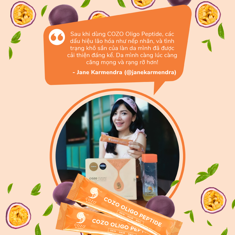 - Thúc đẩy sản xuất collagen. Bột Collagen dạng Peptide Cozo Oligo Peptide với 3 Không: