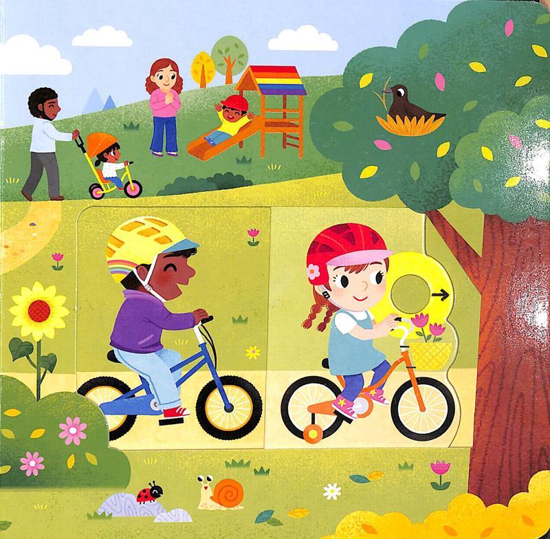 Push, pull and slide the tabs to whizz around the pages of Busy Bikes! Perfect for toddlers just starting to cycle on a scooter or trike, or little ones starting to ride off on their first big bike!