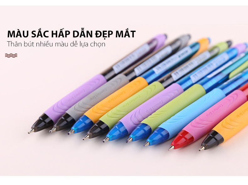 - Bút bi gel thế hệ mới, vị trí cầm có đệm cao su - Công nghệ mực tiên tiến, viết êm trơn, không tắc mực - Bút thiết kế dạng bấm tiện lợi -