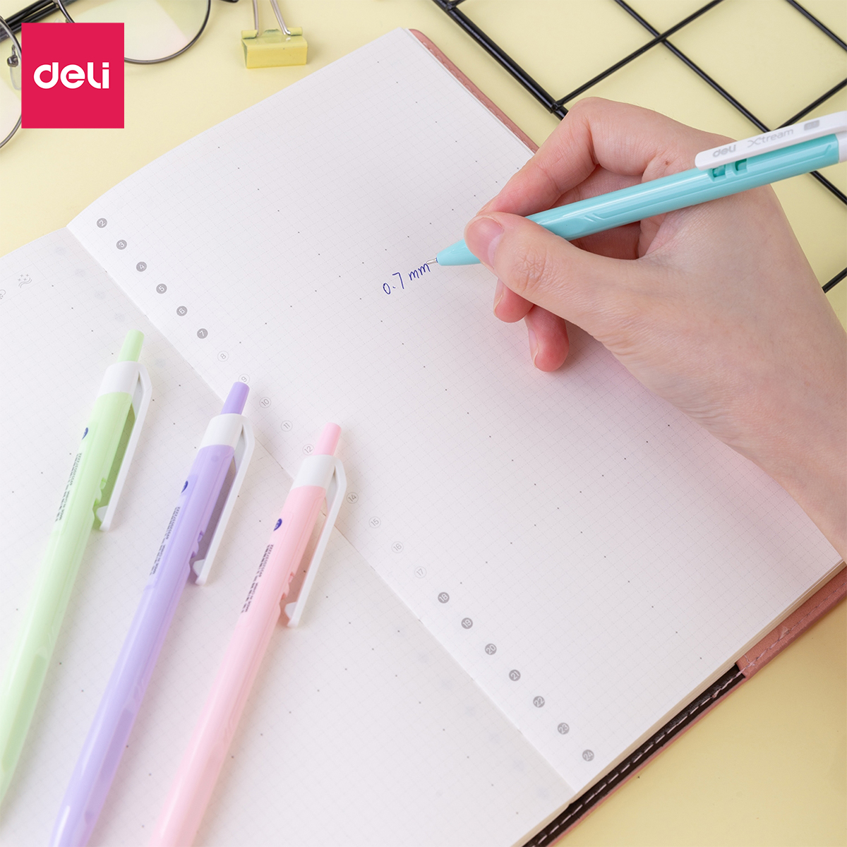 Bút Bi Think 0.7 mm - Deli CQ29-BL - Mực Xanh Bút bi với kiểu dáng bút trẻ trung, phần đầu được thiết kế đặc biệt, khi cầm bút không bị trơn trượt, đảm bảo