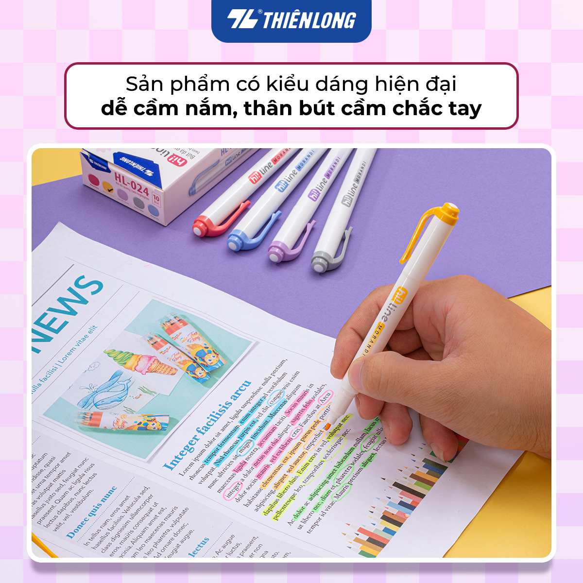 ✨Bút dạ quang màu Morandi Hi! Line Thiên Long HL-024 - Công nghệ chống khô mực