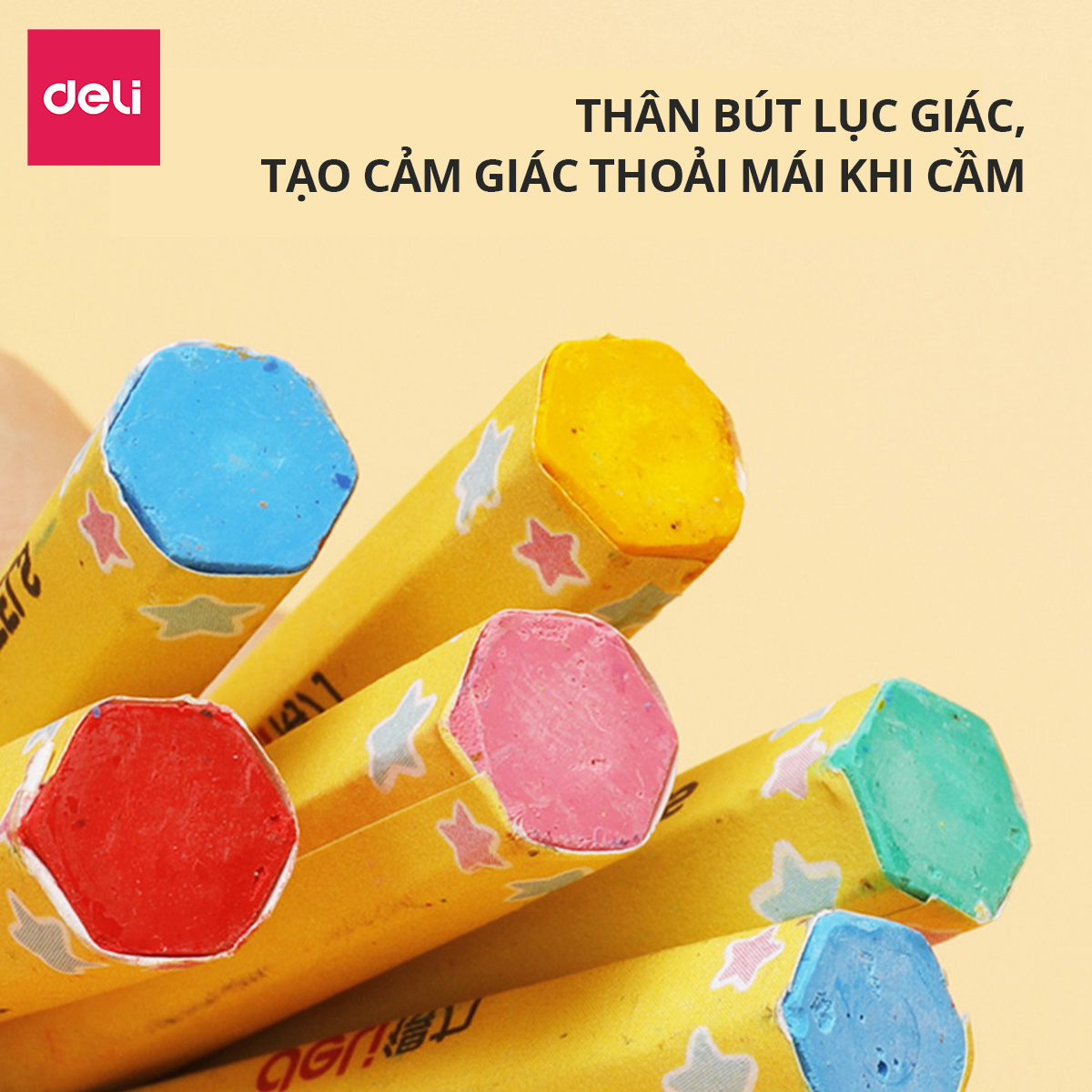 ️Bút sáp Deli có mực ra đều màu, phản quang tốt giúp màu sắc tươi sáng hơn, nhờ đó các tác phẩm của bé trở nên thật sinh động, bắt mắt.