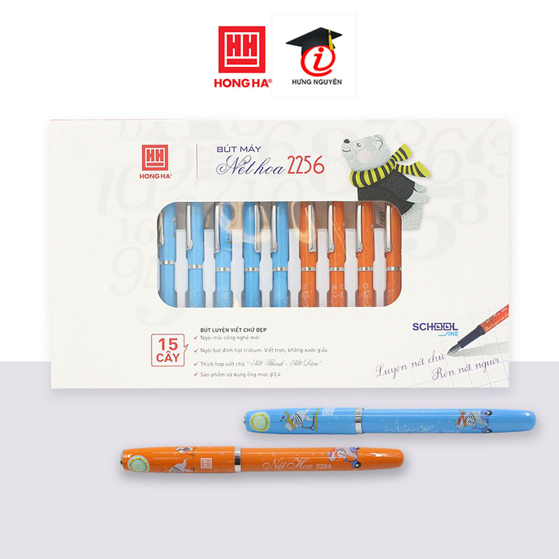 Mua tại TiktokBút máy Hồng Hà 2256 ngòi nét hoa 0.5 mm dùng để viết và rèn chữ, phù hợp cho giáo viên tiểu học, các bạn học sinh cấp I, mẫu giáo lớn. Ngòi đính hạt Iridium cho nét viết trơn không xước giấy; Ngòi mài dễ dàng tạo nét thanh nét đậm khi viết.