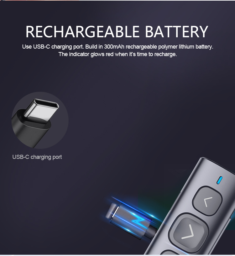 Laser xanh: Người dẫn chương trình không dây với tia laser màu xanh lá cây hiển thị tốt hơn trên nhiều nền khác nhau, ánh sáng xanh lục tươi sáng giúp bạn chỉ rõ mọi thứ