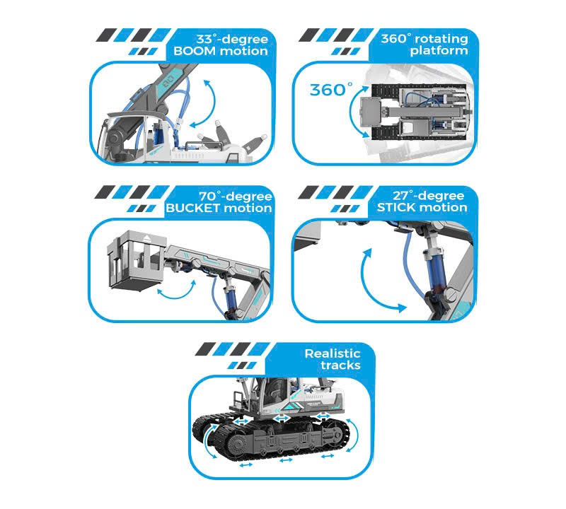 Mô hình máy xúc kim loại điều khiển từ xa 678-8080E – 15 kênh, sóng 2.4G, kích thước lớn Trải nghiệm điều khiển máy móc công trình như thật với máy xúc điều khiển từ