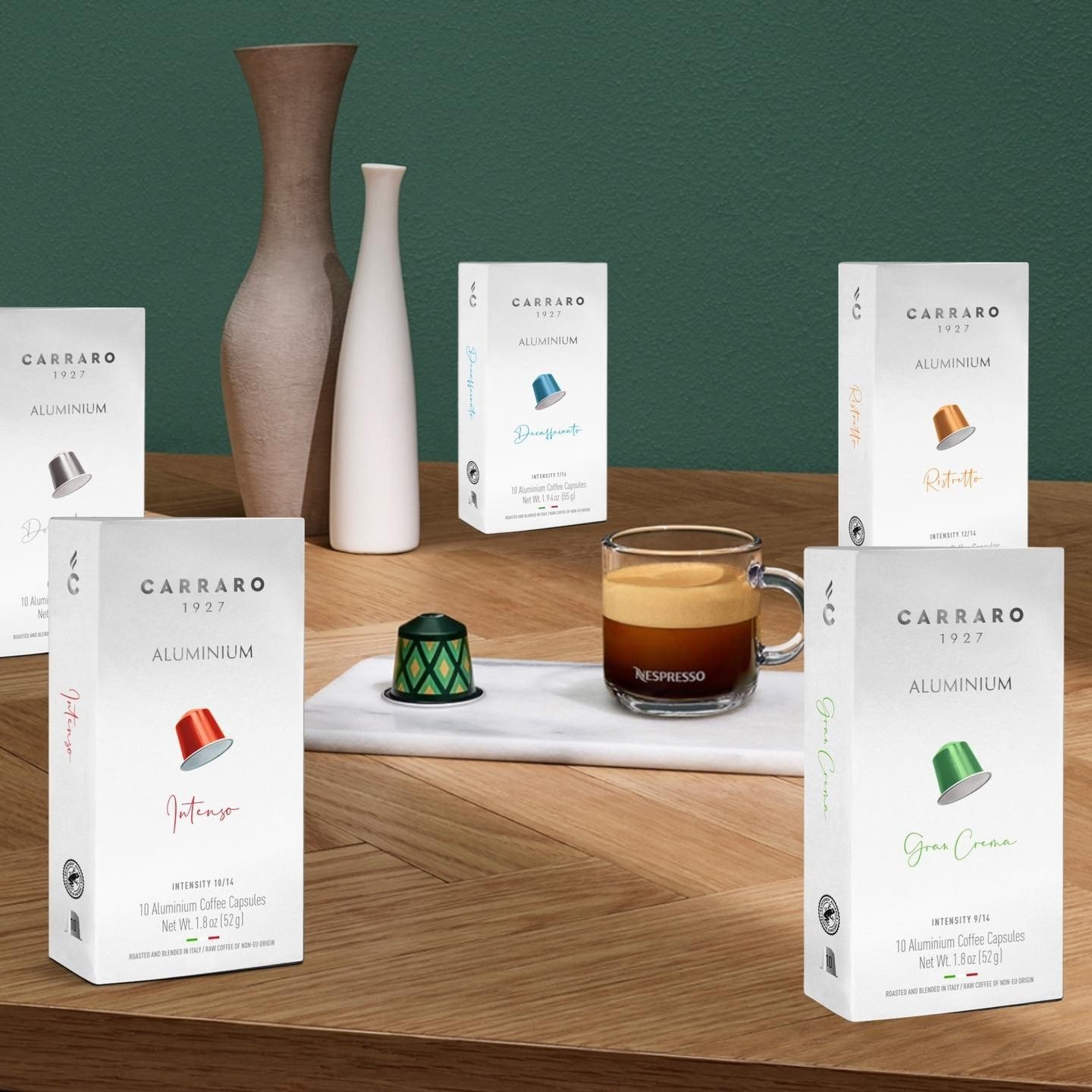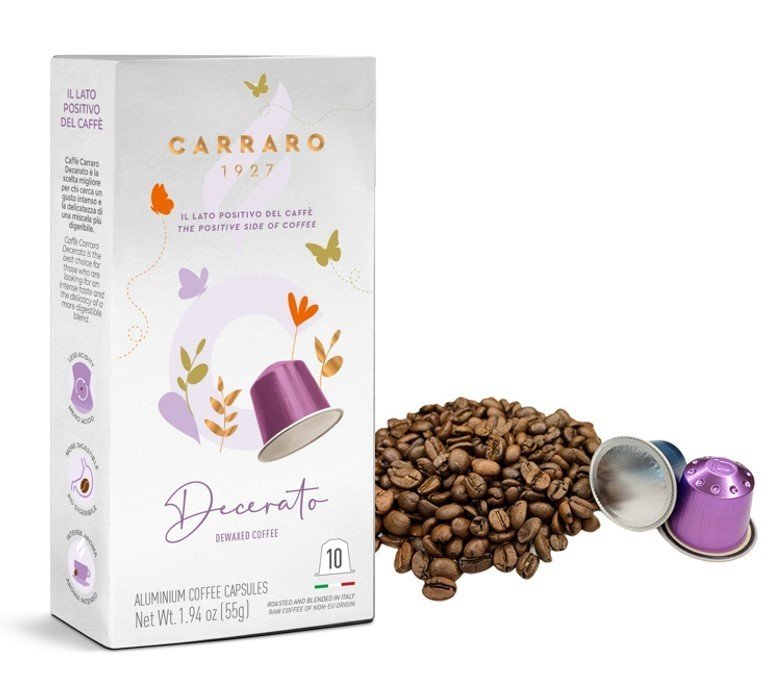 - Sản xuất tại Ý DECERATO – 10 NESPRESSO* COMPATIBLE ALUMINUM CAPSULES DEWAXED COFFEEE CAPSULES, LESS ACIDITY, MORE DIGESTIBLE, INTENSE AROMA Carraro Decerato là sự lựa chọn tốt nhất cho những người tìm kiếm hương vị đậm đà và sự tinh tế. Nhờ quá trình tách lớp vỏ trấu hiện đại giúp giảm nồng độ axit của hạt cà phê. Chúng tôi thu được một loại cà phê hoàn hảo với các hương vị cân đối, hài hòa. Cubes Asia là nhà nhập khẩu độc quyền thương hiệu cà phê Carraro từ Ý.