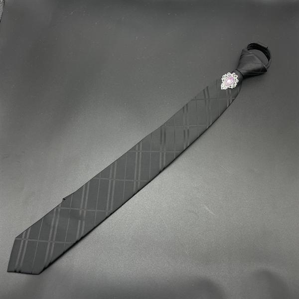Cà vạt 6cm màu đen thắt sẵn kẻ ziczac đính đá tím hồng sang trọngCà vạt 6cm màu đen thắt sẵn kẻ ziczac đính đá tím hồng sang trọng