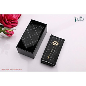 Cavat nam bản 8cm lót silk cao cấp nguyên hộp kèm khăn và khuy măng sét Giangpkc Qtp Sản phẩm cao cấp nguyên hộp quà tặng bản 8cm thích hợp cho trung niên - công