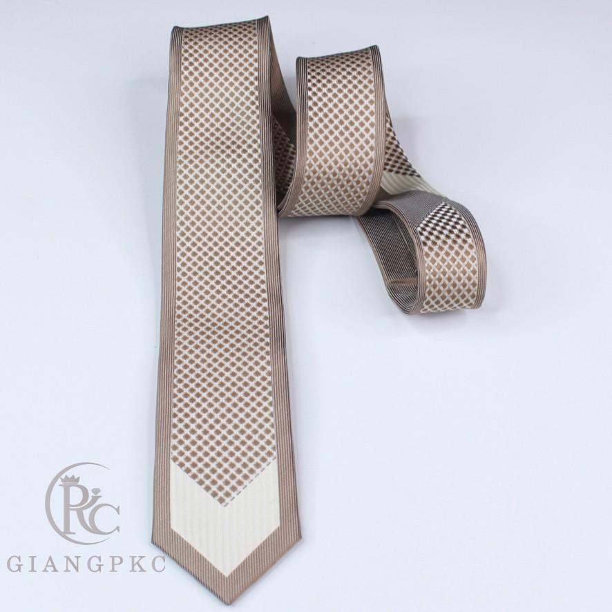 ✨Cà vạt nam bản 6cm chú rể Giangpck q62004 nâu nhọn trắng