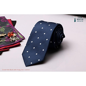 ✨Cà Vạt Nam Bản Trung 7Cm Hàn Quốc cao cấp kèm hộp - Màu Xanh chấm