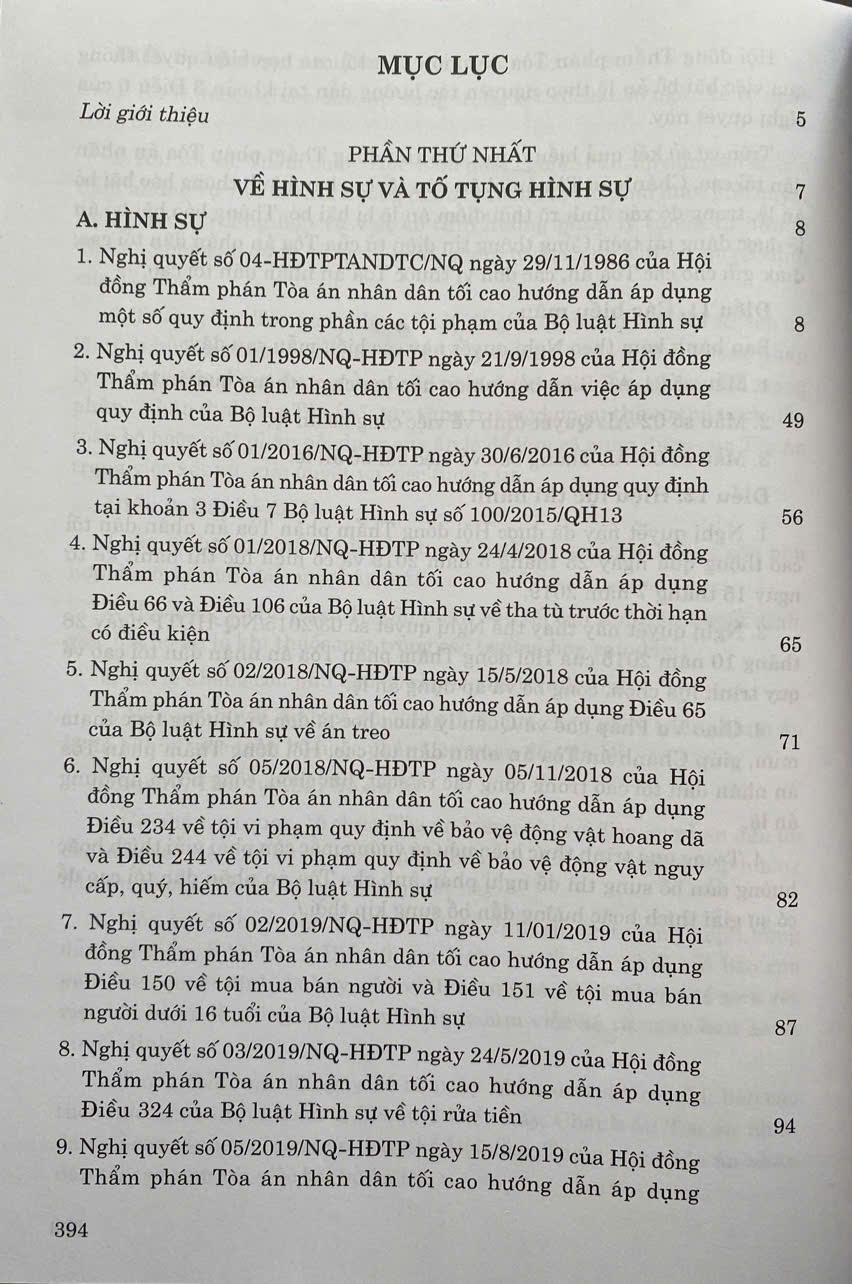 Phần I. Giới thiệu các nghị quyết về lĩnh vực hình sự và tố tụng hình sự.