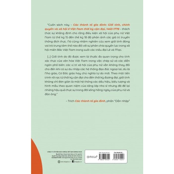 Cuốn sách Các thành tố gia đình: Giới tính, chính quyền và xã hội ở Việt Nam thời kỳ cận đại, 1463-1778 của tác giả Trần Tuyết Nhung gồm 6 chương, phân tích các nội dung: