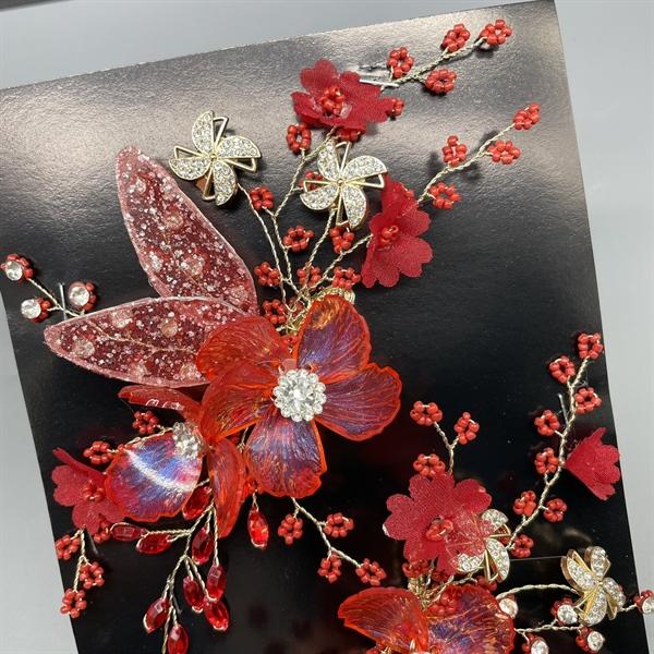 Cài tóc cô dâu hoa đỏ thiết kế thủ công cao cấp #short