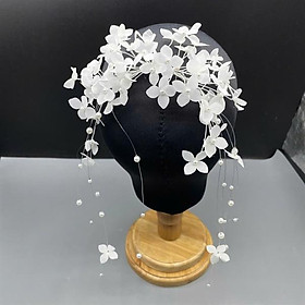 Trâm cài tóc cô dâu thiết kế ngọc trai và hoa 5 canh mềm mại, nữ tính. Tôn lên vẻ đẹp cho mái tóc xinh. Thích hợp trang điểm, make up cô dâu, trang điểm
