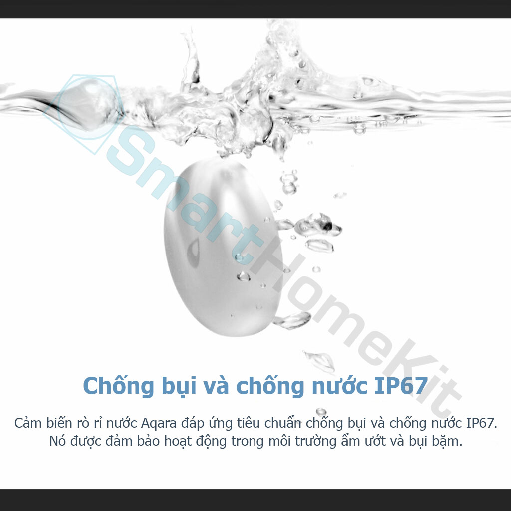 - Xếp hạng chống bụi và chống nước IP67: Cảm biến rò rỉ nước Aqara đáp ứng xếp hạng chống bụi và chống nước IP67. Nó được đảm bảo hoạt động trong môi trường ẩm ướt và bụi bặm.