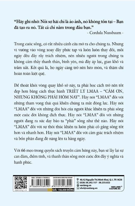 CẢM ƠN NHƯNG KHÔNG PHẢI HÔM NAY - TRIẾT LÝ LMAA - 66 Mẹo Giúp Phá Vỡ Rào Cản, Đập Tan Khuôn Mẫu, Dũng Cảm Và Sống Trí Tuệ - Cordula Nussbaum - Nguyễn Thị Thùy Trang dịch - (bìa mềm) - Giá bìa: 158.000đ