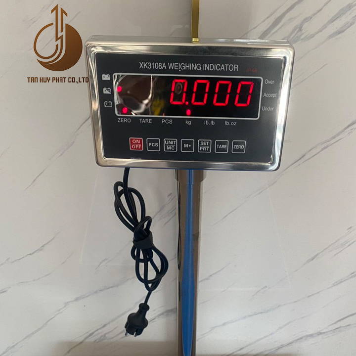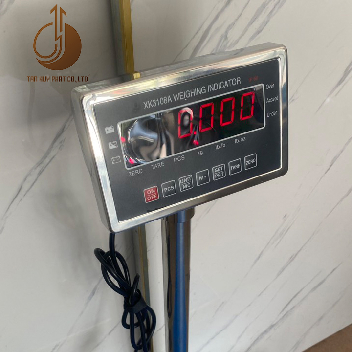 CÂN BÀN ĐIỆN TỬ XK3108A, ĐẦU INOX CHỐNG NƯỚC, THIẾT KẾ KIỂU DÁNG MẶT BÀN CÂN THẤP, ĐẦU CHỈ THỊ GẮN TRÊN TRỤ CAO, KÍCH THƯỚC MẶT BÀN CÂN 60 CM X 80 CM (R X D)