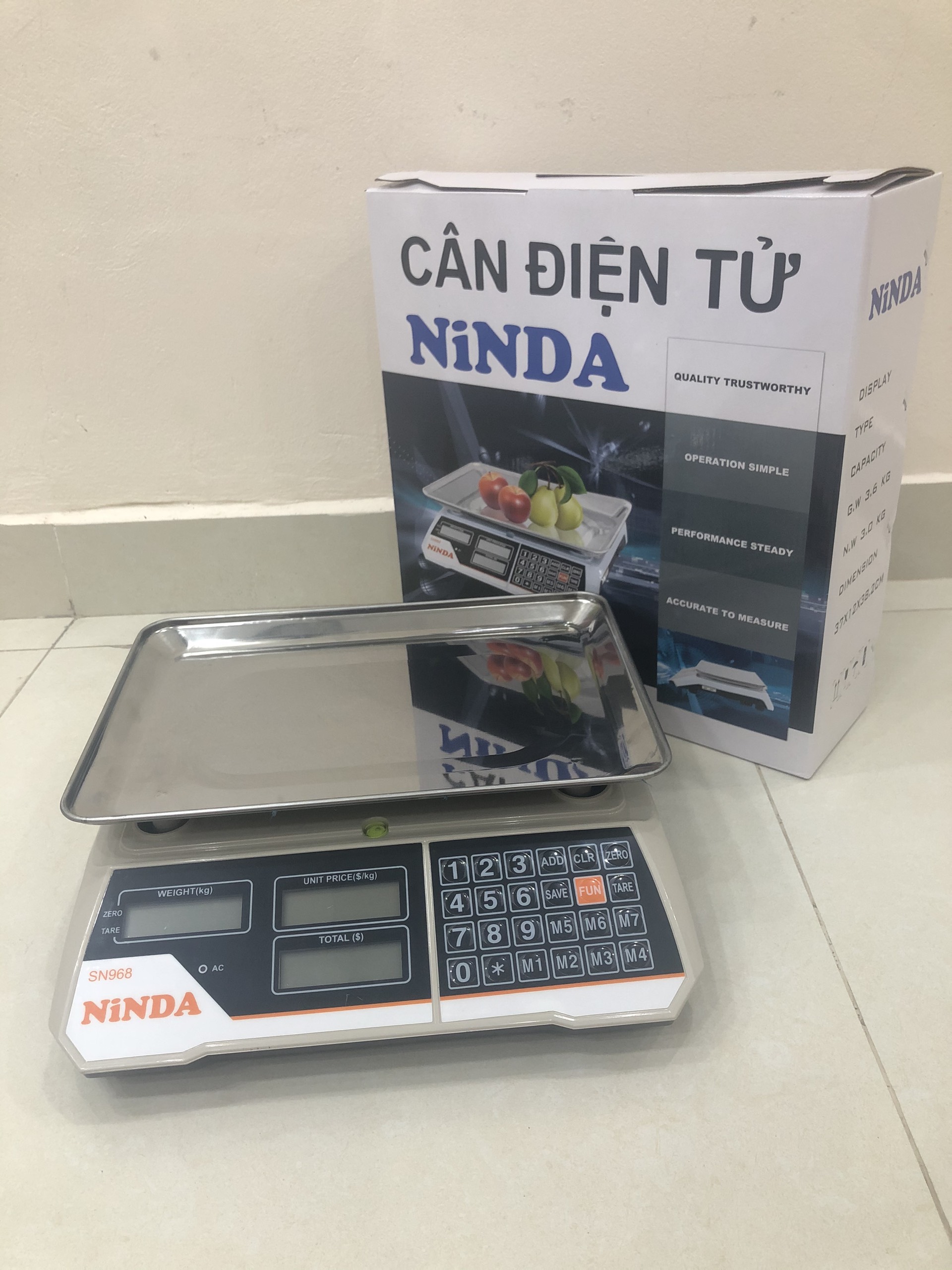 Cân điện tử NiNDA SN968 có đầy đủ chức năng Cân/ Tính giá/ Cộng dồn/ Trừ bì