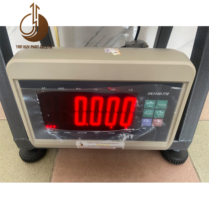 Chất liệu cân: Khung cân hợp kim thép V3 sơn tĩnh điện dày 1.2 ly, mặt bàn cân inox dày 1.5 ly, đầu chỉ thị nhựa ABS thiết kế chống bụi.