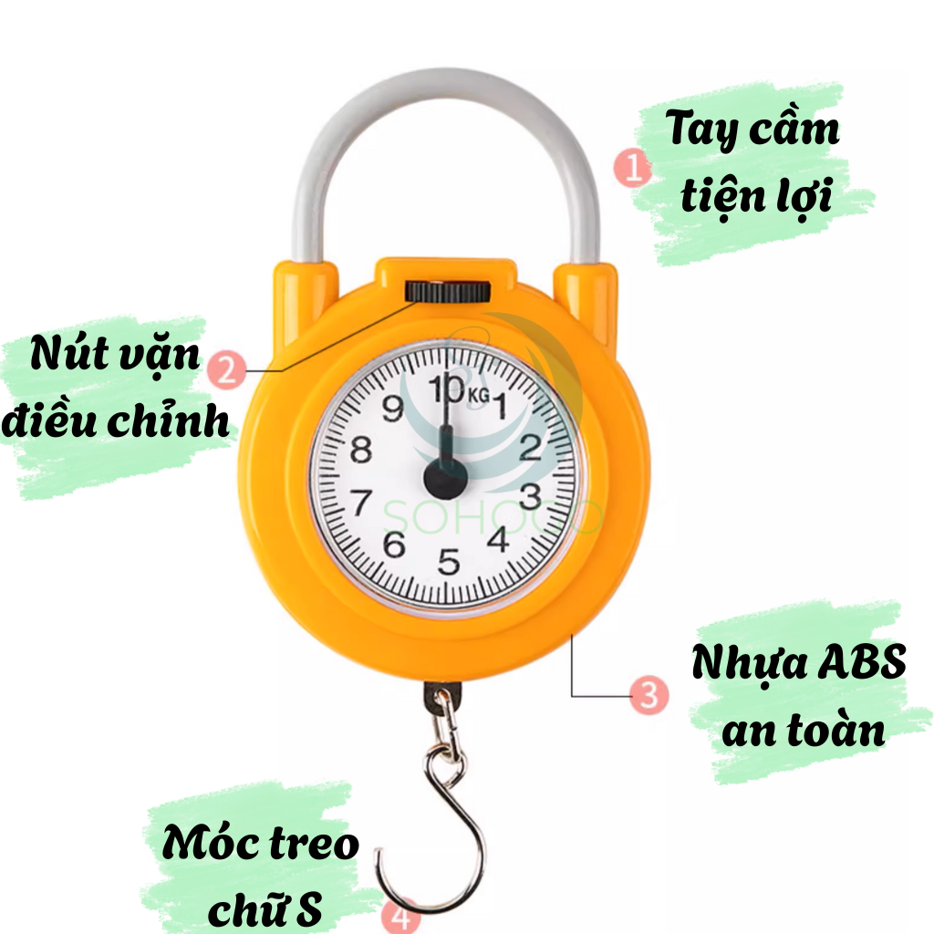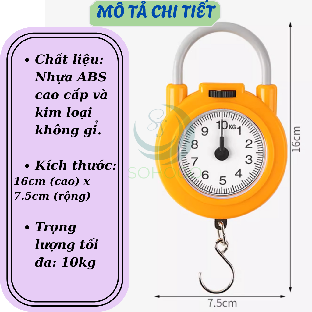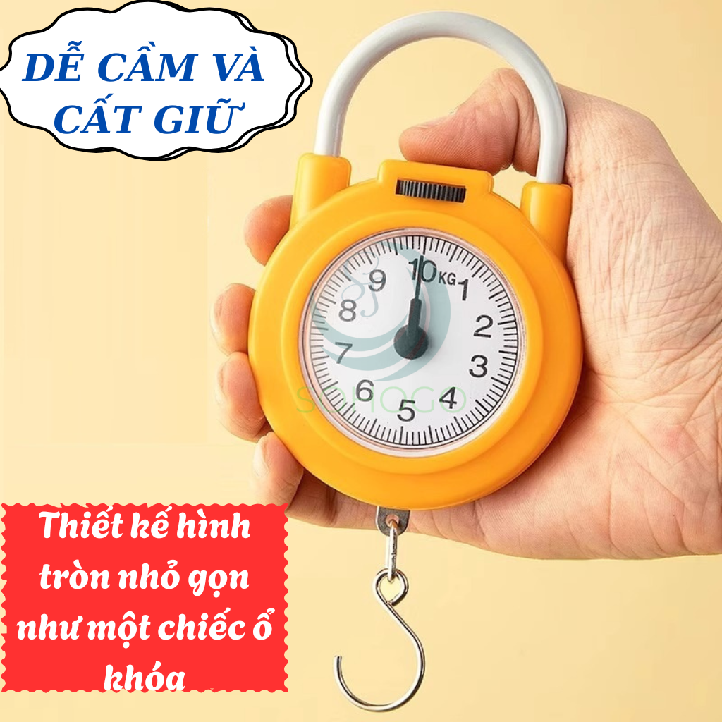 Cân móc lò xo mini là một dụng cụ tiện ích giúp bạn dễ dàng kiểm tra trọng lượng vật dụng hàng ngày. Thiết kế hình tròn nhỏ gọn như một chiếc ổ khóa, có mặt đồng hồ hiển thị trọng lượng rõ ràng từ 0 đến 10kg. Sản phẩm sử dụng móc kim loại chắc chắn để treo đồ, có núm điều chỉnh để cân về 0 khi cần.