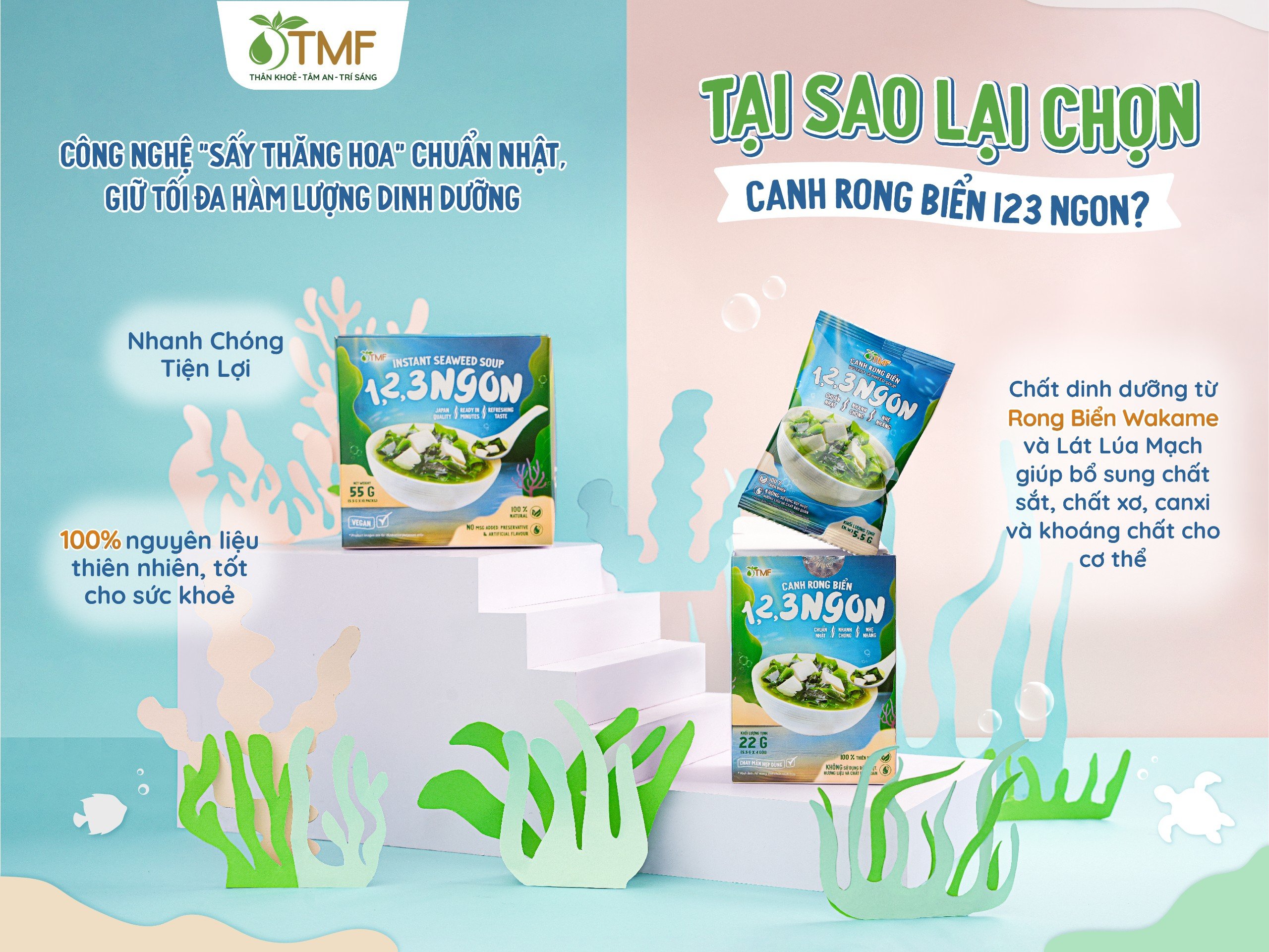 ✨Canh rong biển ăn liền hộp 10 gói canh không bột ngọt nấu canh cho bé TÂM MINH FOODS