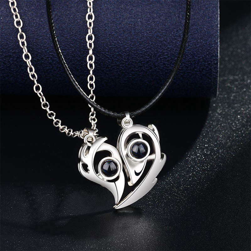 ✨CẶP DÂY CHUYỀN ĐÔI TÌNH NHÂN TRÁI TIM NAM CHÂM 100 NGÔN NGỮ I LOVE YOU