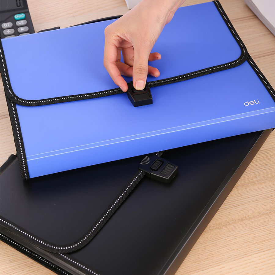 Cặp Tài Liệu A4 5559 Deli Cặp Tài Liệu A4 5559 Deli 12 ngăn, có quai xách và nắp cài tiện dụng, thời trang, dễ dàng mang theo bên mình. Nút cài bằng nhựa dễ