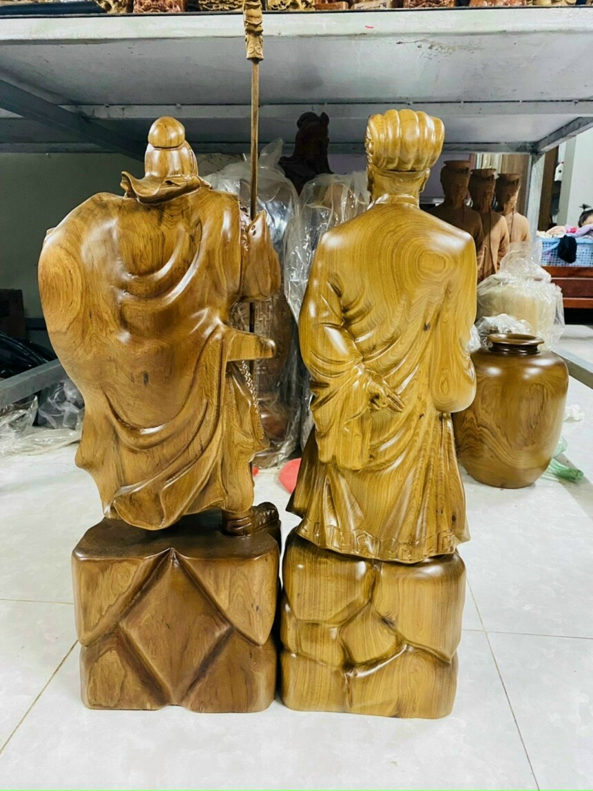 ✨Cặp tượng văn võ song toàn không minh và quan công bằng gỗ bách xanh thơm nức kt cao 20cm