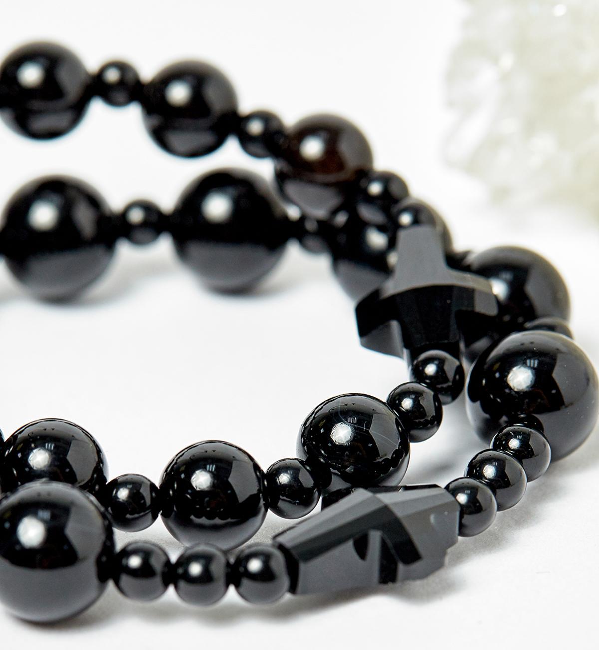 Vòng tay mân côi trầm tốc thánh giá đá obsidian - Hợp ngũ mệnh | Ngọc Quý Gemstones |