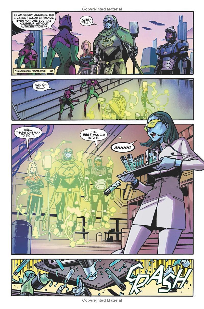 Vacation — all she never wanted! Carol Danvers and Jim Rhodes have rekindled their relationship (and their vacation plans!) just in time to get a distress call from Carol’s half sister — Lauri-Ell, the Kree Accuser — that sends the couple on a bit of a detour. And for a trip to outer space, they’ll need to pack much more than just their swimsuits! An old darkness has re-emerged — one that almost brought the Avengers to their knees not so long ago. A twisted Captain Marvel is once again terrorizing the galaxy! And this time it’s not Carol Danvers…we’re almost sure. But where is Vox Supreme? Prepare for a thrilling fight to the finish as Carol battles to save the legacy of Captain Marvel!