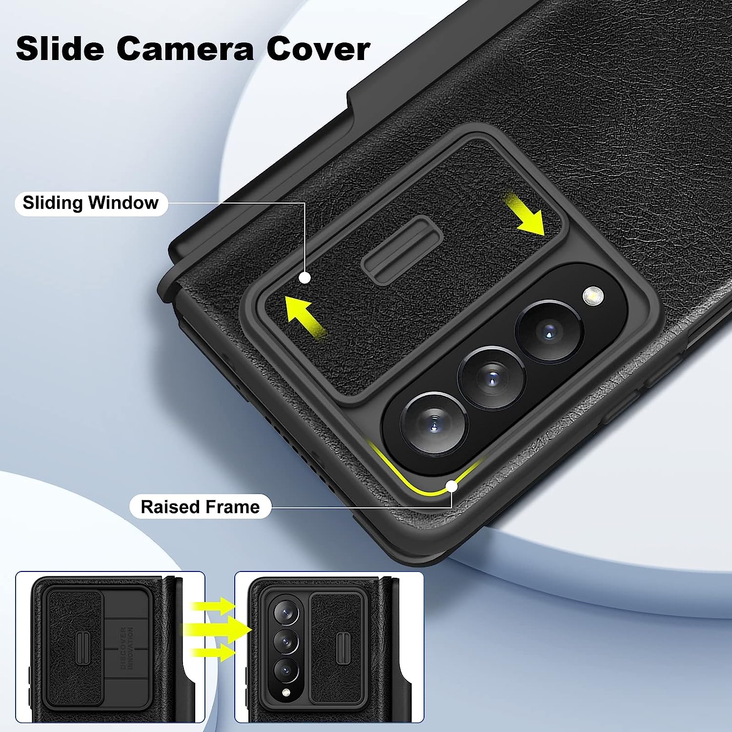 Case bao da chống sốc cho Samsung Galaxy Z Fold 4 trang bị nắp bảo vệ Camera và ngăn đựng S-Pen hiệu Nillkin Qin Pro thiết kế với nắp bảo vệ Camera có thể kéo lên hay thả xuống tiện dụng và phần viền nhô lên 0.2mm giúp bảo vệ camera chống trầy, chống bụi cực kỳ tốt.
