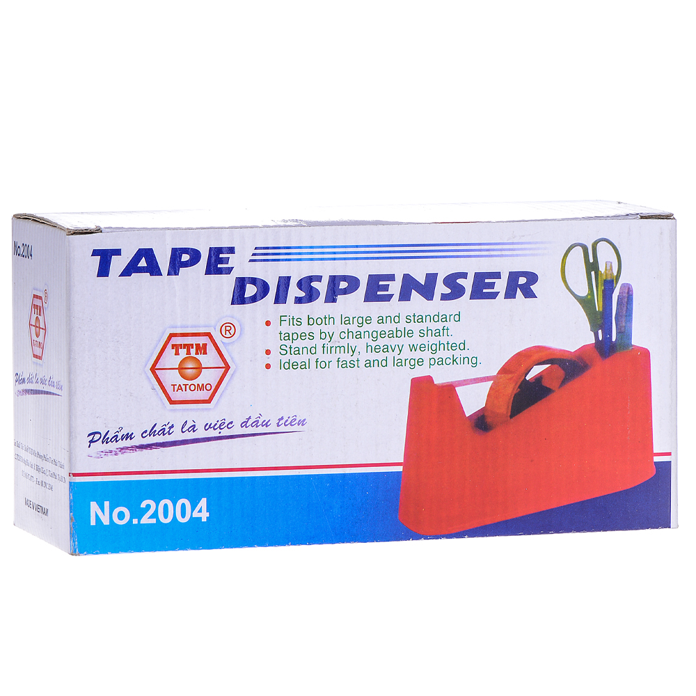 - Đặc điểm: là sản phẩm cắt băng keo cầm tay bằng sắt. Sản phẩm chuyên dụng cho việc cắt keo bản lớn 5cm, rất tiện dụng cho việc dán, đóng gói các thùng hàng carton. - Chất lượng: chất liệu