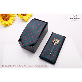 ✨Cavat nam Hàn Quốc cao cấp bản trung (7cm) - Tặng kèm hộp, Màu Xanh chấm đỏ