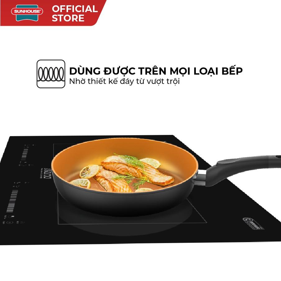 Sử dụng được trên nhiều loại bếp: Chảo dùng được trên bếp gas, bếp hồng ngoại, không dùng trên bếp từ.