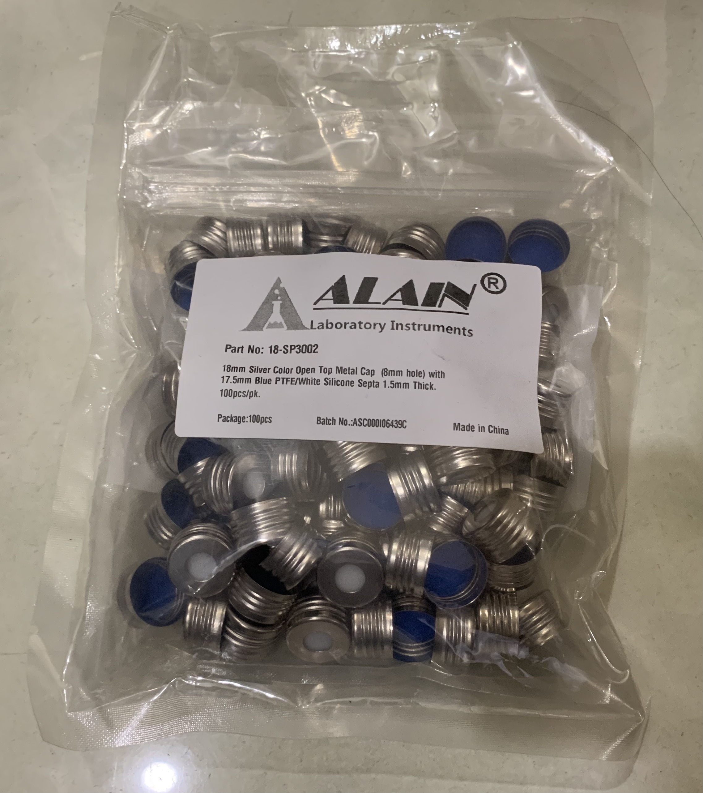 Chúng tôi cung cấp nhiều loại vial, insert vial, cap và septa khác nhau dùng cho các thiết bị Autosampler của nhiều hãng như Agilent, Shimadzu, T Chai vial sử dụng trong quá trình sắc ký. Vial (2ml, 4ml, 10ml, 20ml,) được làm từ thủy tinh, gồm loại trong suốt và màu nâu. Nắp vặn kim loại từ tính ND18 có lỗ 8mm đệm septa Silicone trắng/PTFE xanh dày 1.5mm, không xẽ rãnh